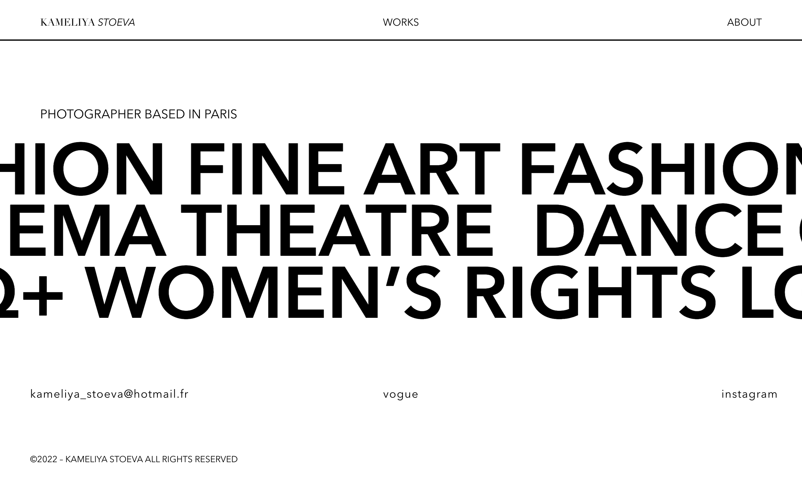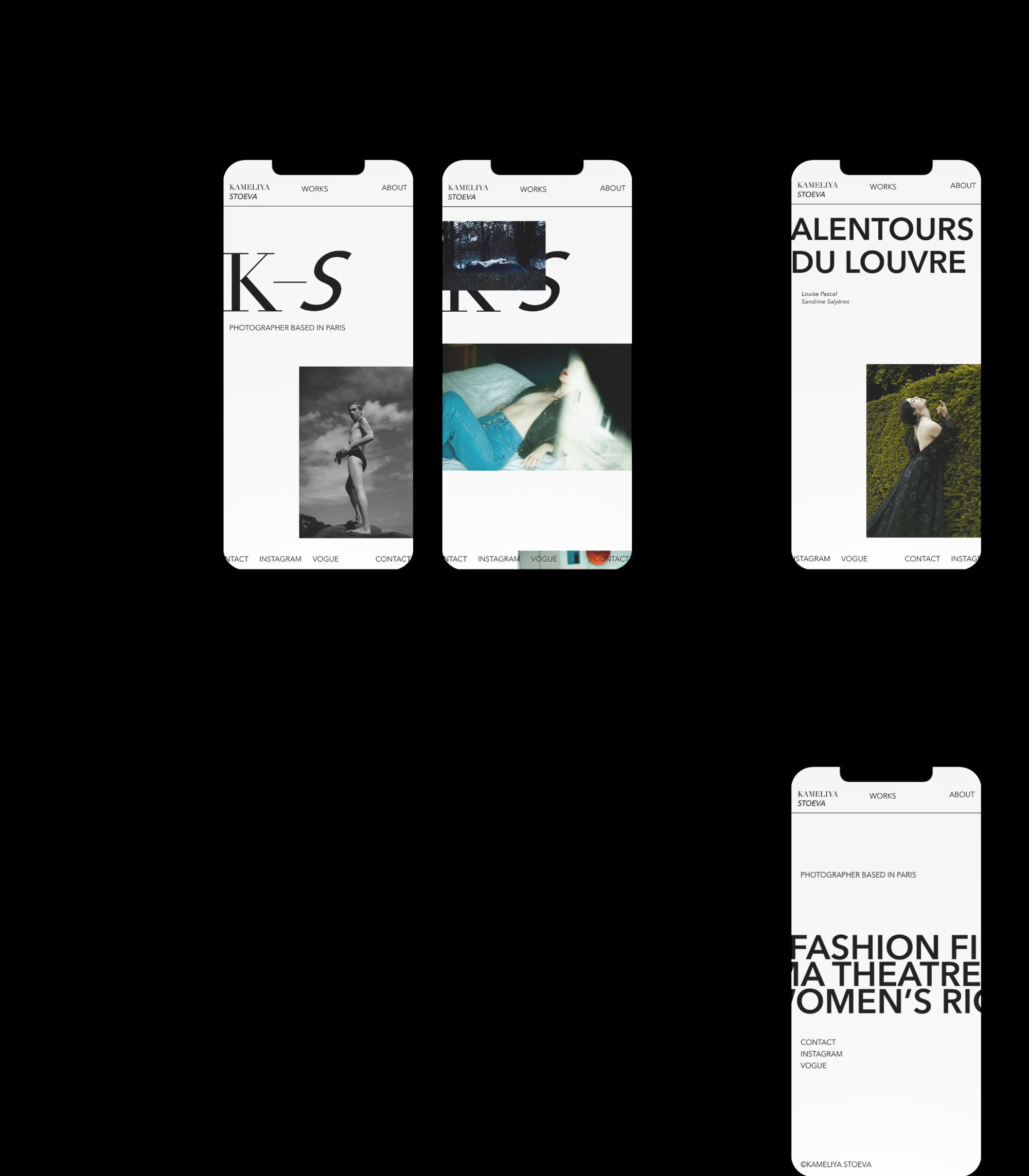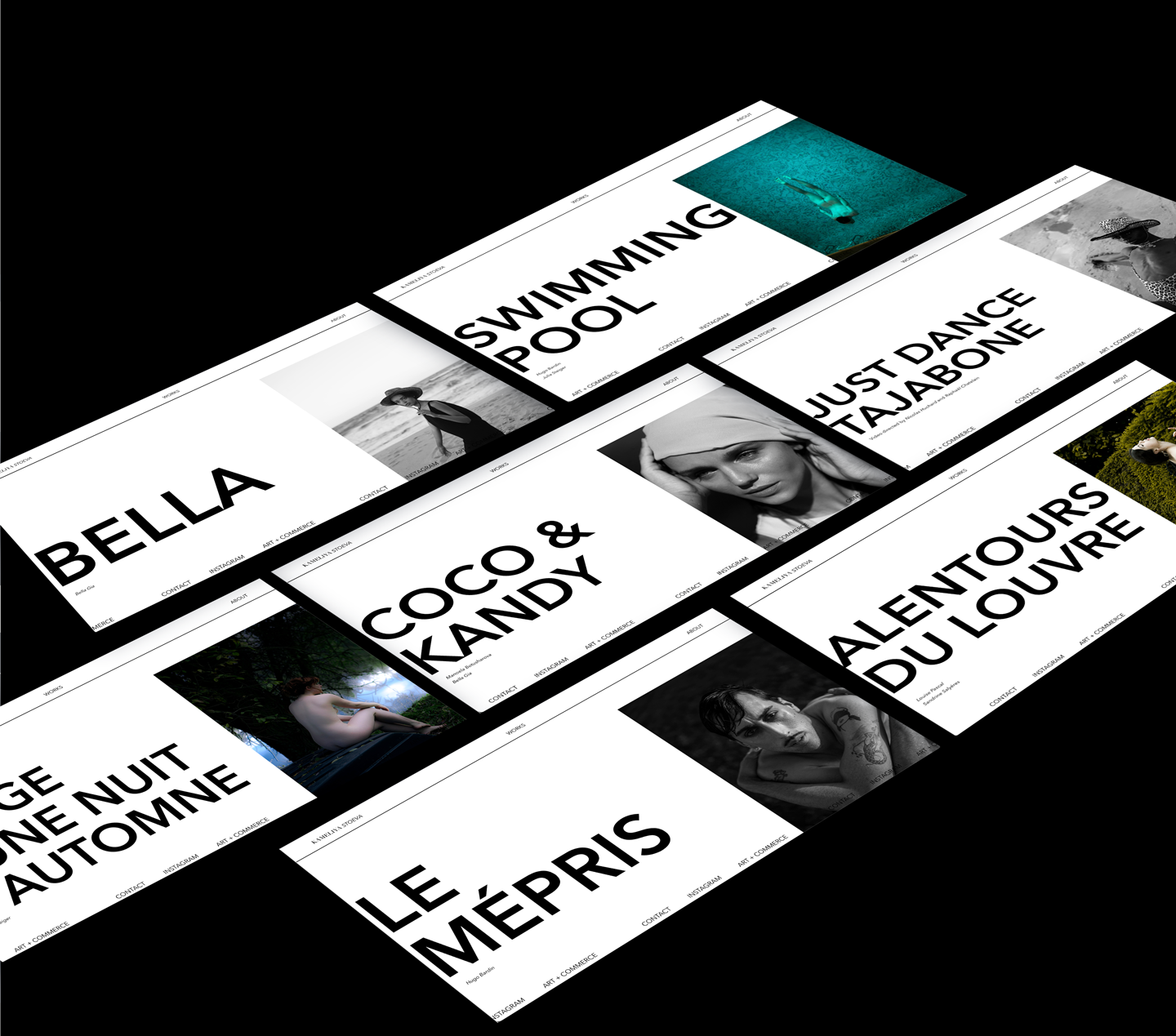 Création d'un site web minimaliste sur la base d'une identité visuelle sobre et élégante. Une apparence épurée laissant une large place à l'image avec un minimum de texte.